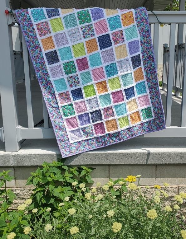 Kit includes pattern by Prairie Point Junction and all necessary fabric to make the top and binding of a 40 inch x 58 inch quilt using Chenille It Blooming Bias trim.