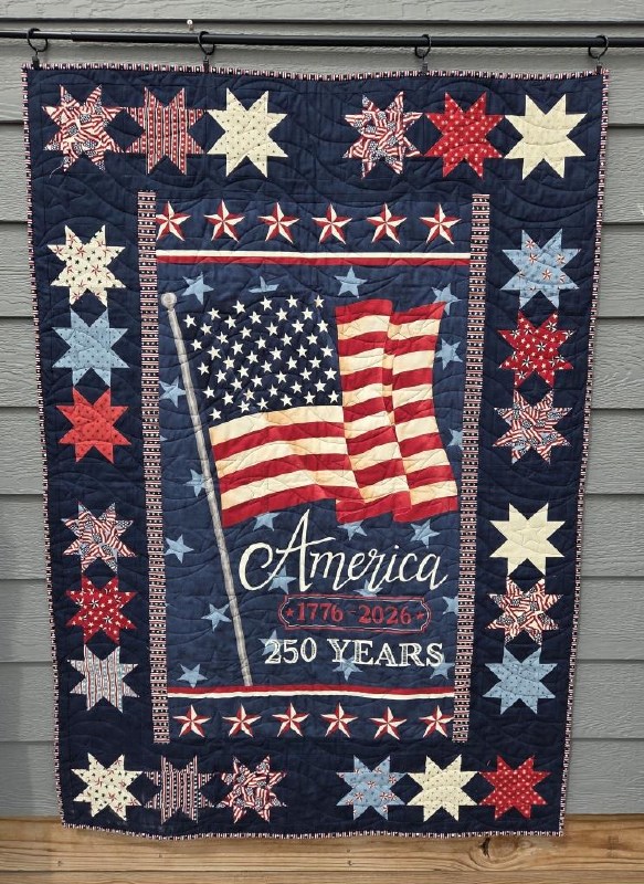 Celebrate 250 Years with this lap/wall quilt which is guaranteed to become a keepsake. The America 250 Years Panel designed by Deb Strain is at the center of the quilt and is surrounded by stars made with a America 250 Years Layer Cake.