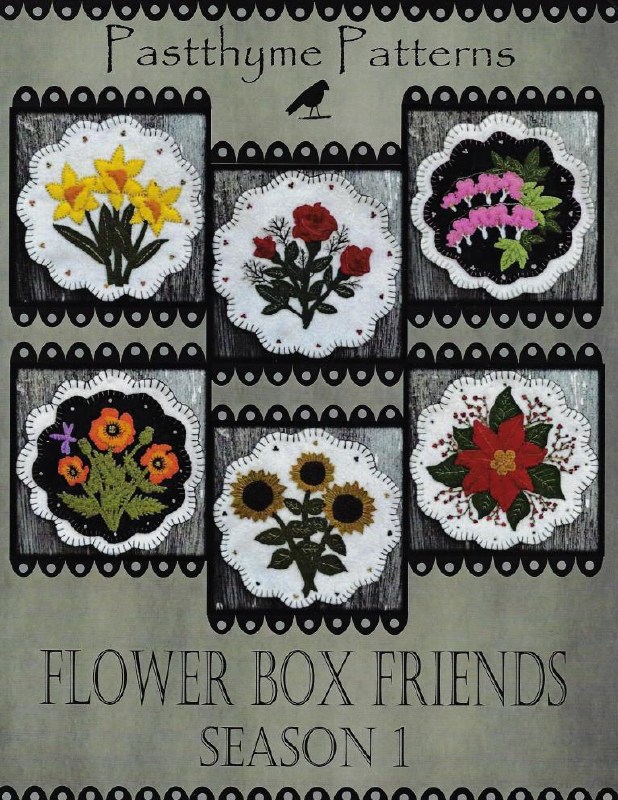Pattern includes instructions by Pastthyme Patterns to make six wool applique mats 8 inch x 8 inch finished size.