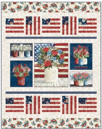 Kit includes pattern instructions by Wendy Sheppard and all necessary fabrics to complete the top and binding of a 49" x 62" quilt. Fabrics are by Farmhouse Americana by Cindy Jacobs for P&B Textiles.
