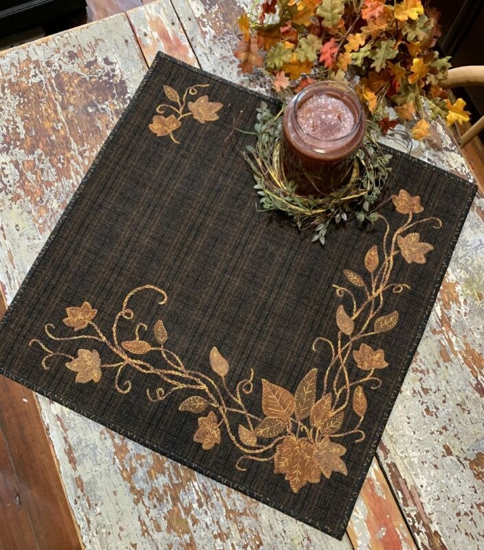 Pattern includes instructions by the Woolen Needle to make a 20 x 20 inch wool appliqued table topper.