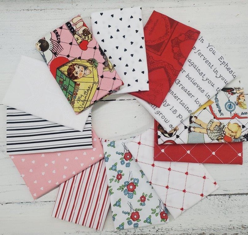 Bundle includes 12 prints from the Take Heart line by Janet Wecker-Frisch for Riley Blake Designs.
