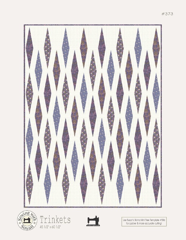 No fussy points, just fast chain piecing in this original pieced quilt pattern by Susan Marth. The diamonds and backgrounds are cut quickly & easily with Susan's companion Skinny Mini Tree template set SUZ586 (Not included)