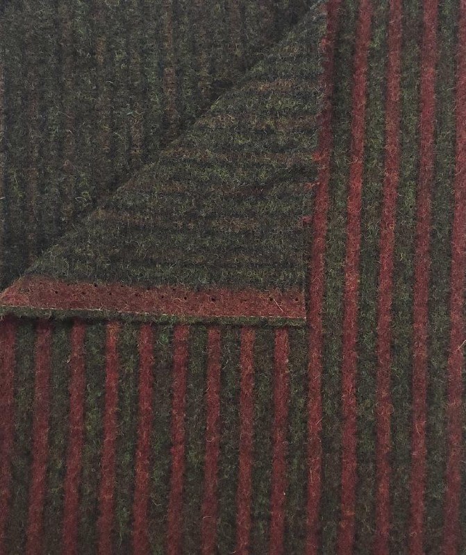 This is such a unique texture with stripes of red and green. It's reversible so one side shows a definite stripe, the other side is much more subtle.
